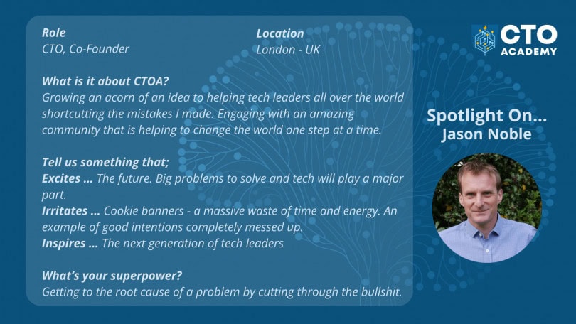 They say the best business ideas come from personal experience of something not working well or an unmet need. CTO Academy emerged from the direct experience of founder Jason Noble struggling through his career as a CTO to find the tech leadership support he wanted and needed. Always lots of training for the technical, but…